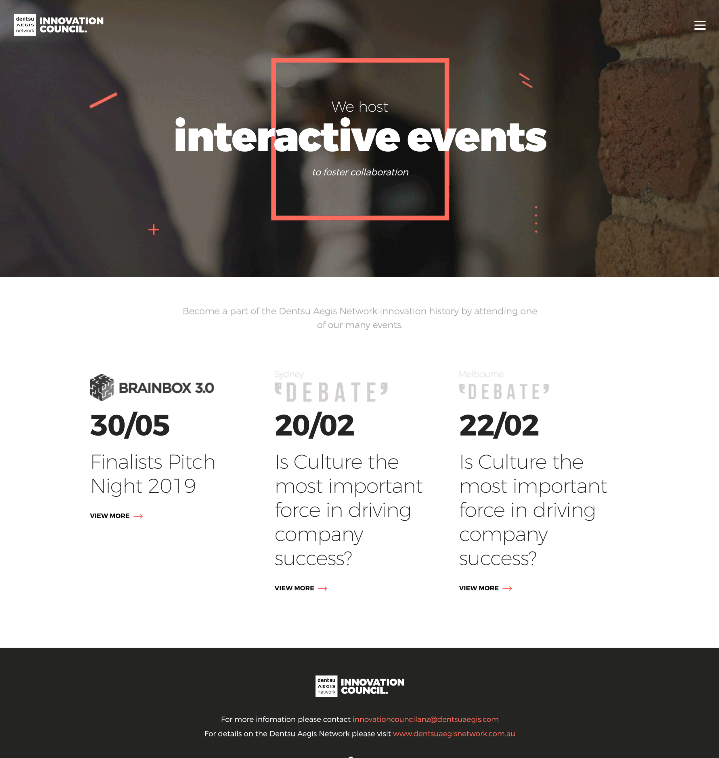 As apart of Isobar Australia, one of my main jobs was creating a brand and website for the Innovation Council. This was a team of Executives and Experts working towards Innovative solutions within the Dentsu Aegis Network Group.